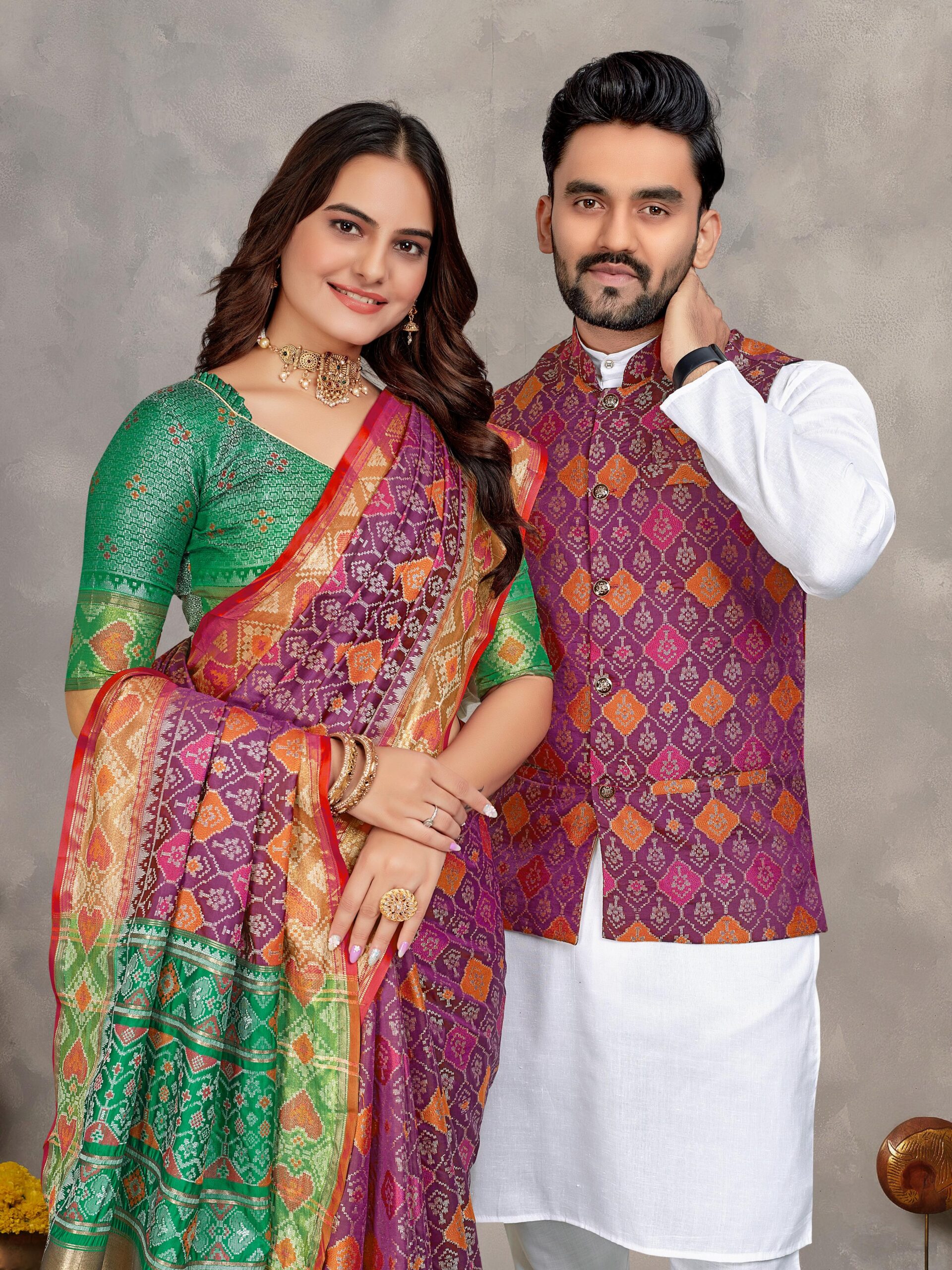 Make every occasion memorable with the Festival Special Couple Combo – Kurta & Saree. Designed for couples who love to stay stylish together, this premium combo set includes: