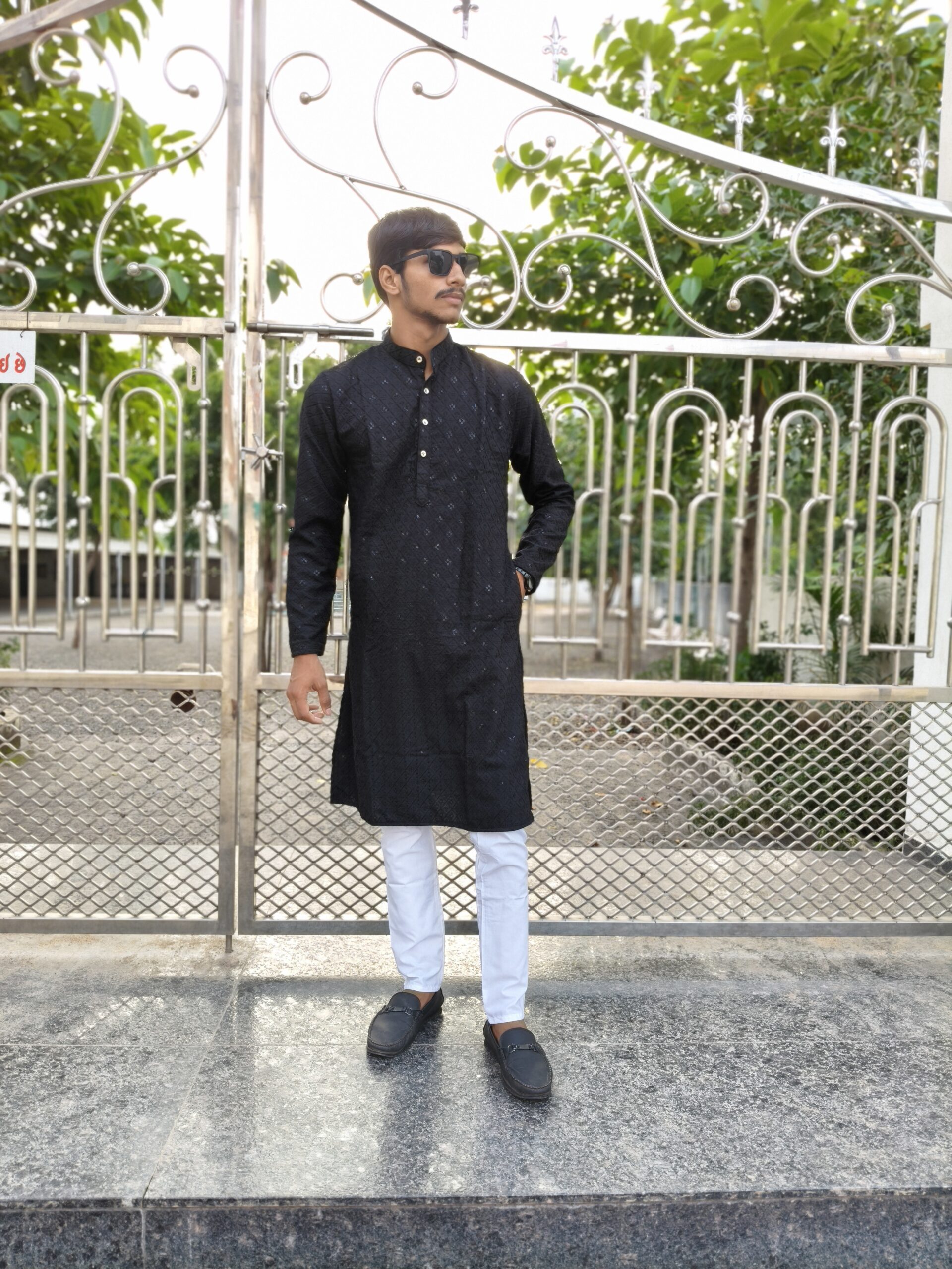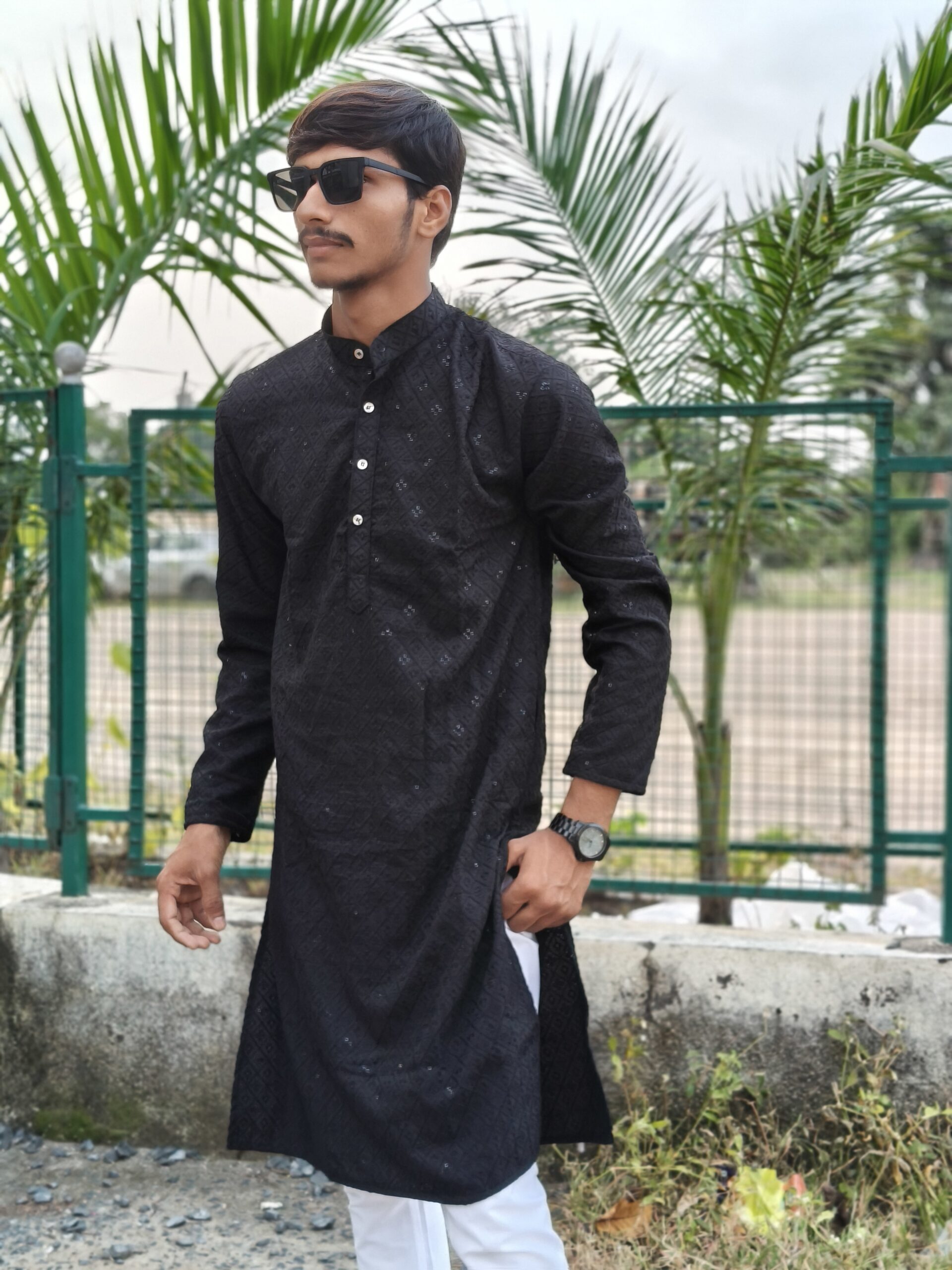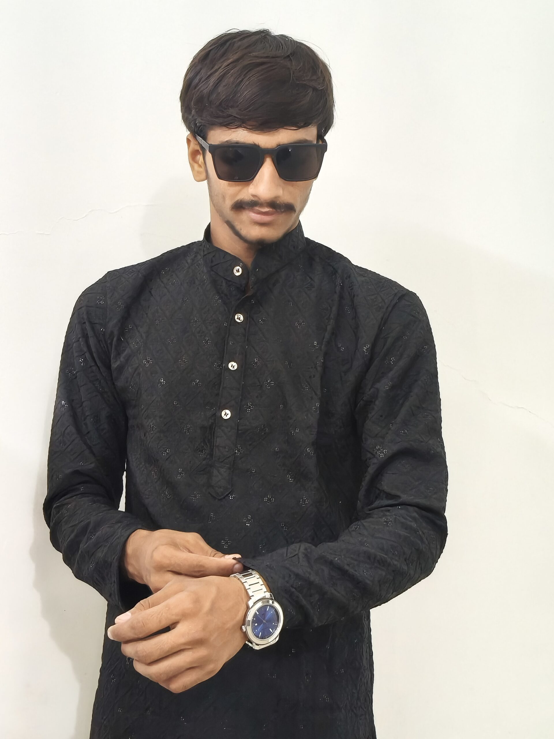 Upgrade your style with our Men’s Black Embroidered Kurta. This kurta blends traditional craftsmanship with modern fashion. We used fine Lucknowi thread work to create elegant hand embroidery. The detailed design makes it perfect for weddings, parties, and festive occasions.