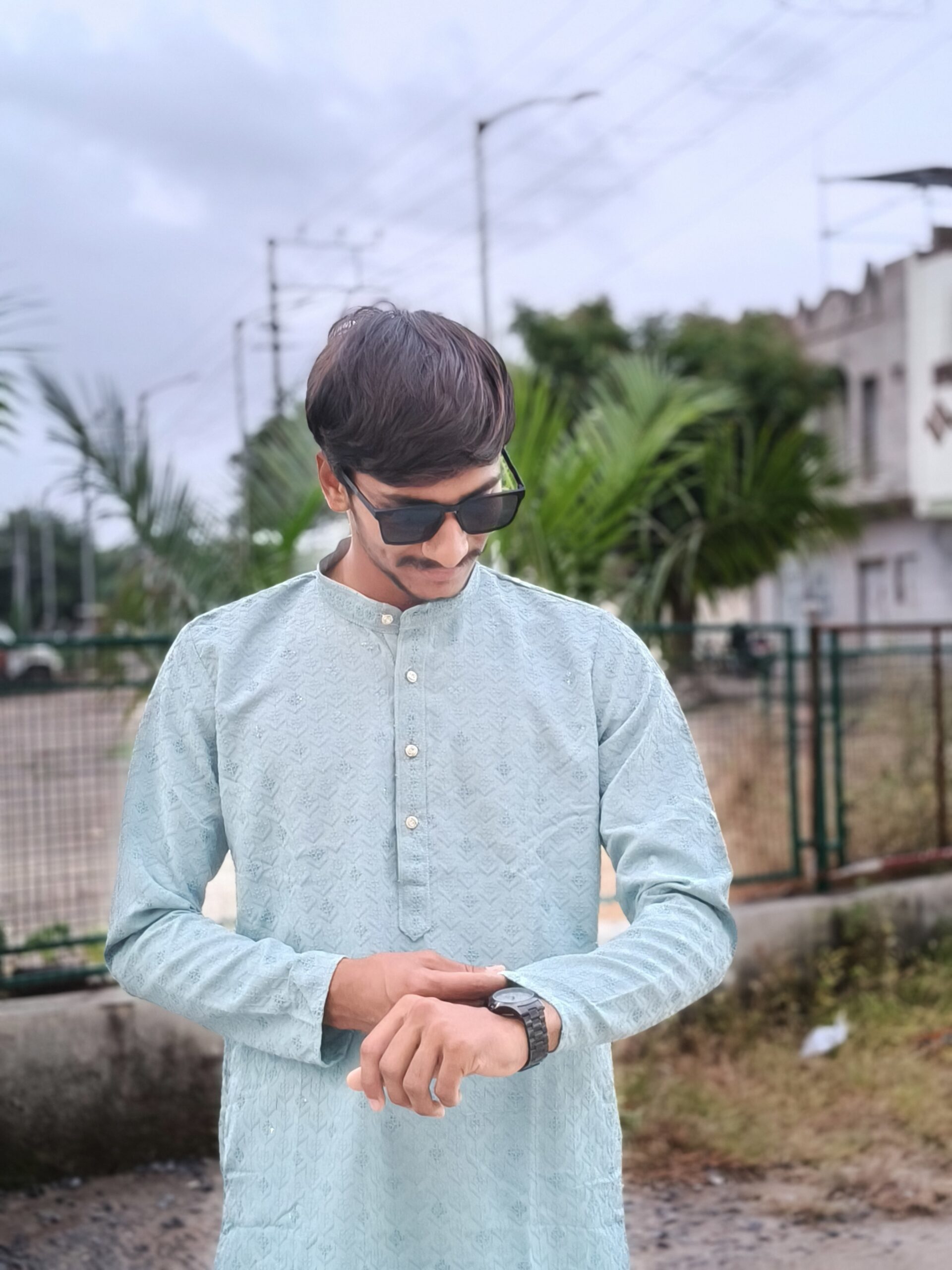 Step into timeless elegance with this pista green cotton printed kurta for men. Crafted from high-quality cotton fabric, it ensures maximum comfort and breathability, keeping you stylish all day long. The subtle woven print and pastel pista shade make it a perfect choice for traditional as well as semi-casual occasions.